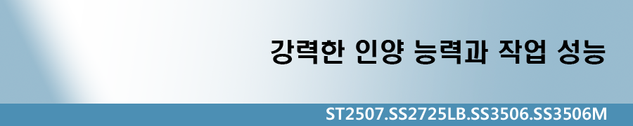 작업자의 시야확보와 장비조작성및작업 능률을 향상 시켰습니다. 스윙 안전핀 위치 센서를부착하여 편리하게 핸드 브레이크 작동을 통해 안전핀을 고정할 수 있습니다. 동급 최대 아우트리거를 적용하여 작업의 안정성을 향상 시켰습니다.(전방 6.2M, 후방 5.4M)